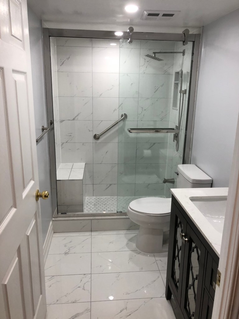 The bathroom renovation exceeded my expectations with its stunning transformation. From the sleek new fixtures to the elegant tile work, every detail was meticulously executed, creating a luxurious and functional space.